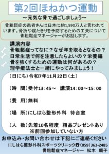 当院は骨粗鬆症治療にも運動療法にも力を入れています。第2回開催をお待ちください。