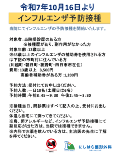 令和7年10月16日より当院にてインフルエンザ予防接種を開始いたします。