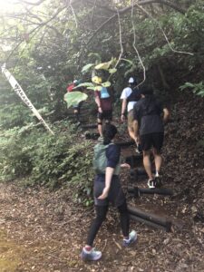 倒木をくぐり抜け、最初のエイドへ。ここでは 梅ゼリー をいただきました。爽やかな酸味で疲れが吹き飛びます!