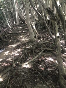 ただし下りも油断できません。木の根が複雑に張り出し、