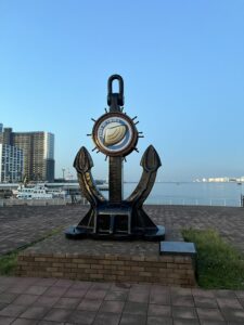 少し走ると港が見えてきました。 モニュメントがお迎え!