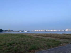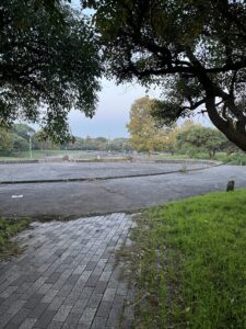 西向きの海岸から真ん中の公園を通って東に出ようとしますが、