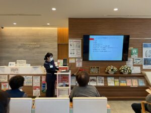 次に骨マネ松木からまず「骨粗鬆症ってなに?」というところから説明しました。骨粗鬆症になるとどうなってしまうか、食事や日常生活の注意点などについてもお話させていただきました。