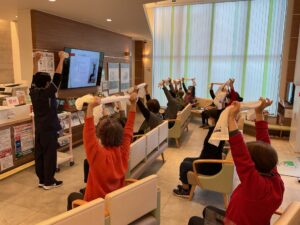 次に理学療法士の森さんから運動を取り入れる際の注意点、それから運動の実践を行いました。質問もたくさん出ました。